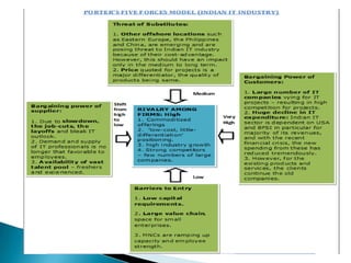 The IT & ITES industry in India has offerings that span goods, software products, and software services. The industry is categorized into four broad segments: hardware, software products and engineering services, IT services, and ITeS-BPO. The sector has grown significantly and increased its contribution to India's GDP from 1.2% in 1998 to 7.5% in 2012. Exports from the industry have grown from less than 4% of total Indian exports in 1998 to about 25% in 2012.