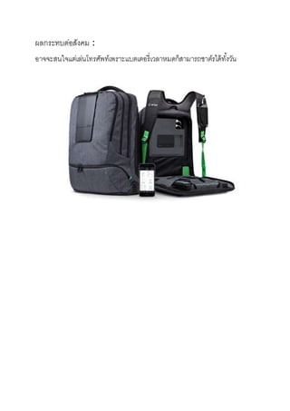ผลกระทบต่อสังคม : อาจจะสนใจแต่เล่นโทรศัพท์เพราะแบตเตอรี่เวลาหมดก็สามารถชาต์รได้ทั้งวัน