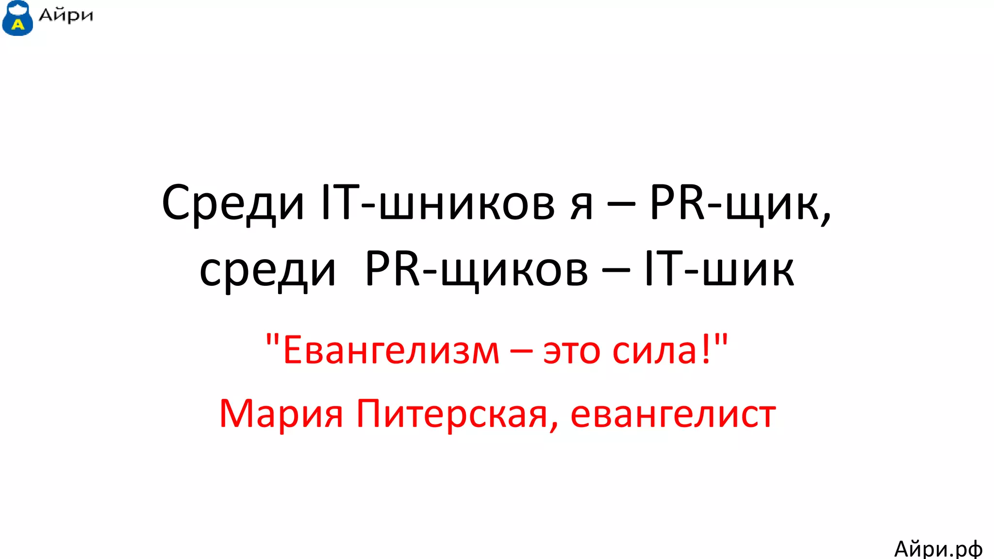 Мария Петерская является экспертом в области PR и IT, она основатель и коммерческий директор компании айри.рф, а также наиболее признанный евангелист для малого и среднего бизнеса. В документе представлены достижения, включая награды, конференции и разработанные курсы, а также упоминания известных личностей в сфере технологий. Айри.рф фокусируется на скорости, доступности и безопасности интернет-ресурсов для бизнеса.