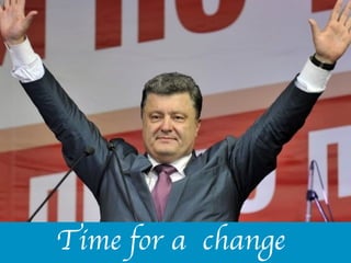 The document discusses recent changes in Ukraine's government and goals for the country's growing IT sector. It notes that Dmytro Shymkiv was appointed as Deputy Head of the Presidential Administration to implement e-governance reforms. Ukraine aims to transform its economy from resource-based to knowledge-based, creating 100,000 IT jobs and $10B in exports by 2020. The Ukrainian IT market is expected to grow significantly in the next 5-6 years, with the sector employing over 50,000 people and 500+ outsourcing providers annually growing 20-30%. Ukraine has the largest IT outsourcing market and talent pool in Central and Eastern Europe.