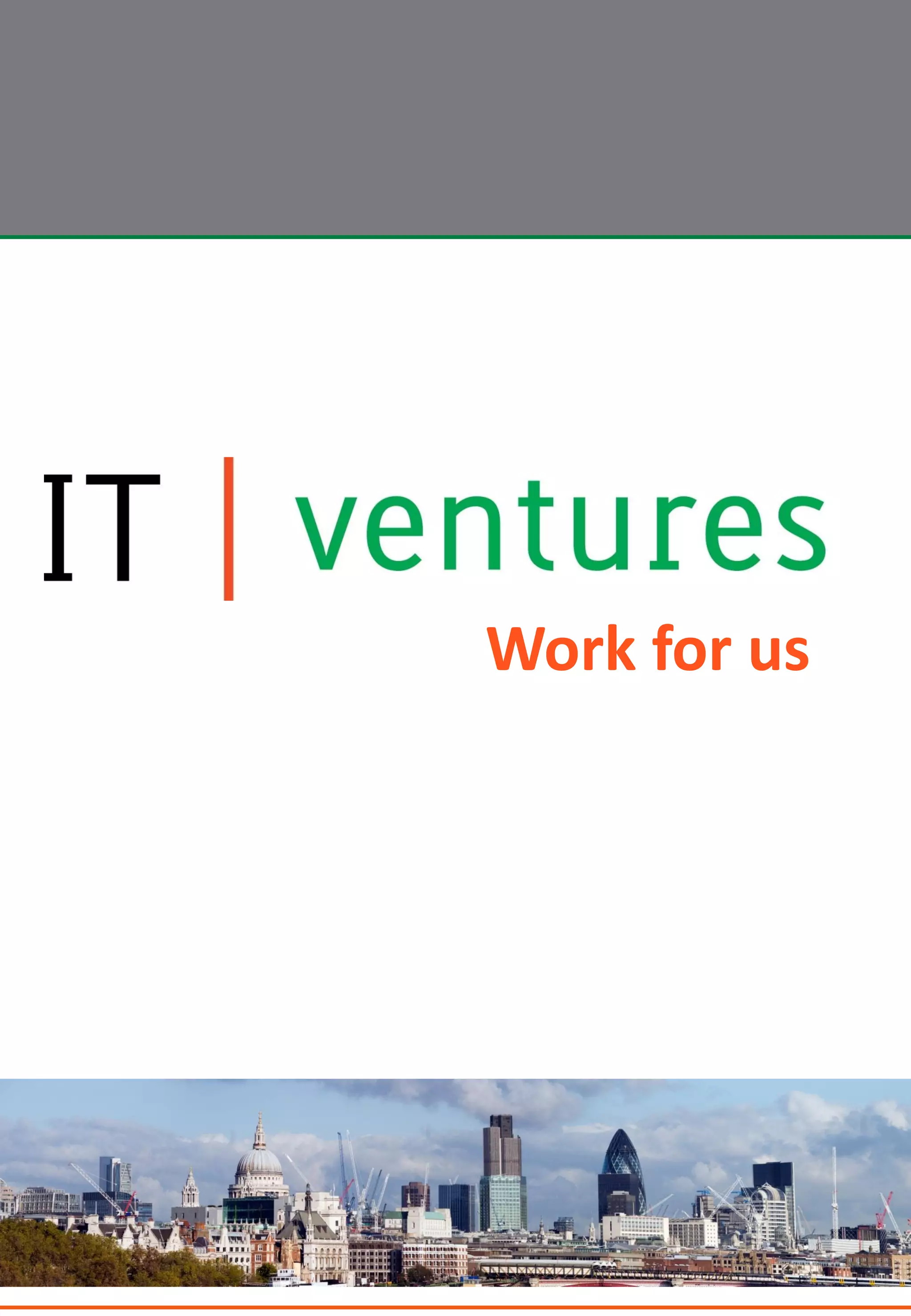IT Ventures is a UK-based IT recruitment firm that specializes in placing IT professionals in roles across various industries. They recruit for positions including IT management, project management, software development, networking, and more. IT Ventures offers training and career development programs to help consultants progress from trainees to directors. They operate out of offices in London and Manchester and have ambitious growth plans to expand internationally in the coming years. The company culture emphasizes a fun, ambitious environment and offers incentives like team trips and individual competitions to reward performance.