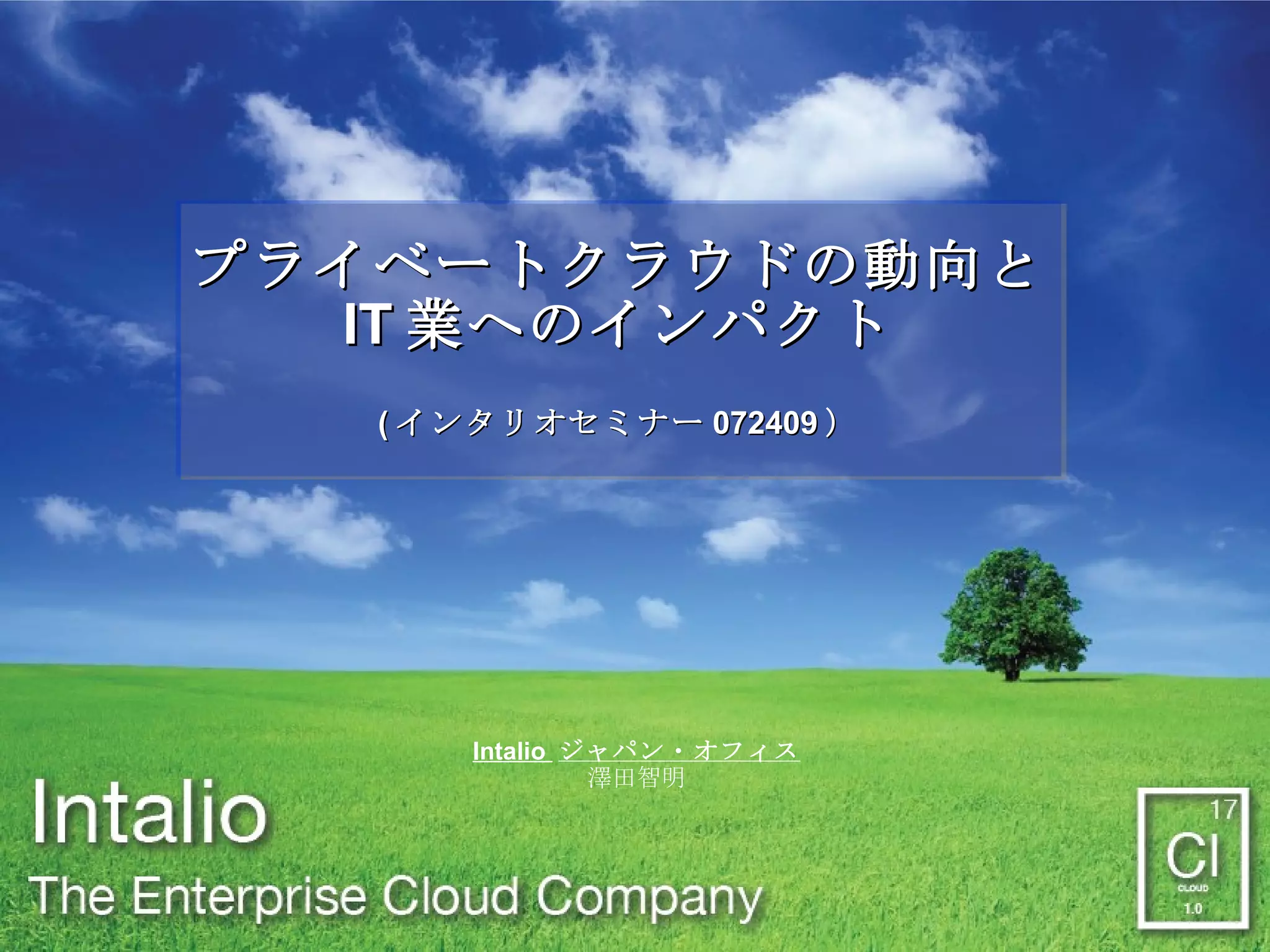 クラウドコンピューティングはこれまでの IT 流行語と何が違うのか?ここ10年での IT 流行語はその効果を実現できていない。。? ASP 。。、ユーティリティー・コンピューティング。。、 EAI 。。、 SOA (??)。。。 クラウドコンピューティングも誇大広告で終わるのか? 過去の流れとの2つの大きな違い 前例のない景気後退 が“新しい IT 利活用モデル( SaaS )”の台頭と、ユーザーの購買を促している。 - 社内 IT 部門がサービス提供できないなら、ビジネスマネジャーは何処かで探してくる。 仮想化技術 が成熟し、手頃な値段の“一般企業でも採用可能な”ソリューションが多数登場⇒“サーバー、ネットワーク、ストレージの各レベルでの仮想化技術により、 サービス指向型インフラストラクチャー( SOI = IaaS) が実現し、”コスト削減“と”新規ビジネス開発のための投資の最適化“の両面がバランスよく促進される。 ビジネス 最適化 = アジリティー + ビジネスと IT の融合 + サービス提供 柔軟性 業界標準 + クラウドコンピューティング コスト 削減 仮想化 + エネルギー 効率化 ( Green IT) + 標準化 自動化 + =
