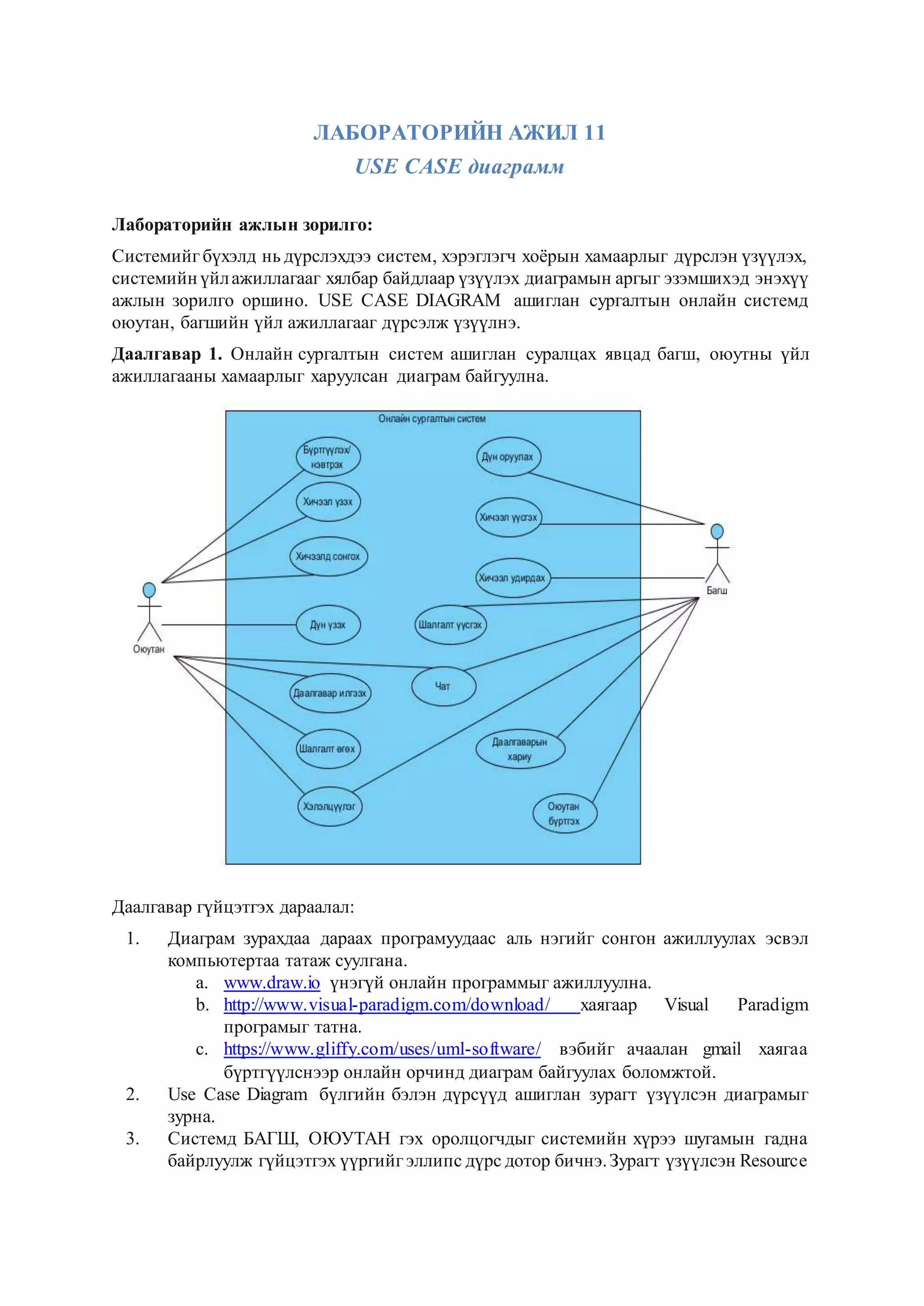 ажлын зорилго оршино. USE CASE DIAGRAM ашиглан сургалтын онлайн системд