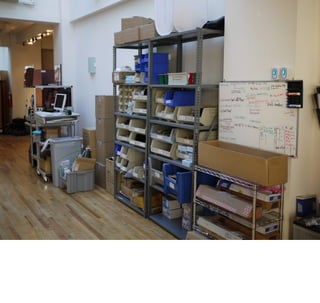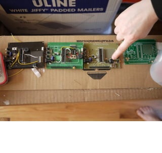 最初のプロトタイプの中身。これは電池での動作時間が1∼2時間で、大きさも通常のドミノパイと比