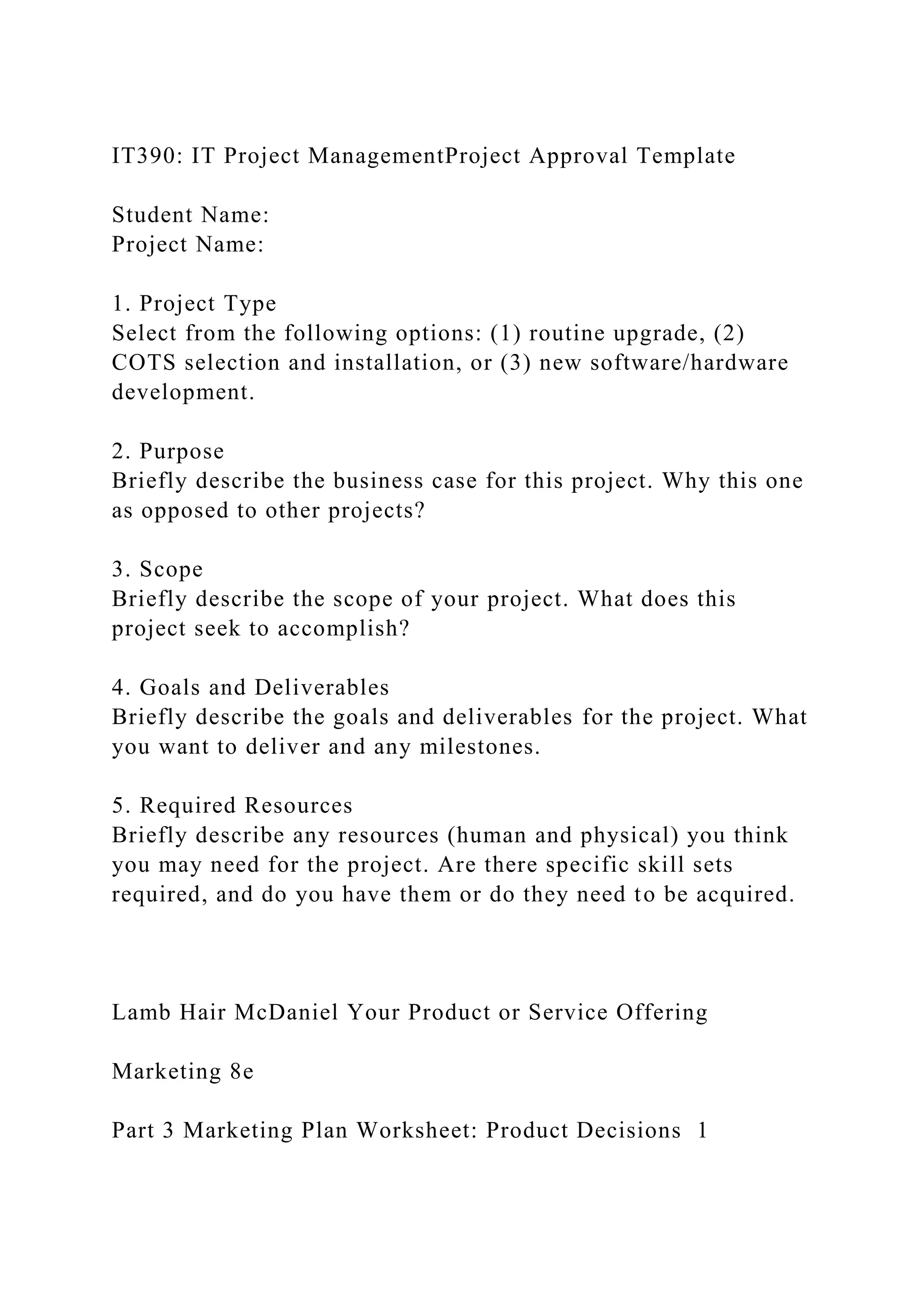 The document outlines various templates and worksheets related to IT project management and marketing strategies for a car tracking service. It includes sections on project approval, product decisions, marketing opportunities, and competitive intelligence, detailing objectives, target markets, and operational strategies. The focus is on utilizing e-business for enhancing customer engagement and ensuring effective fleet management through innovative tracking solutions.