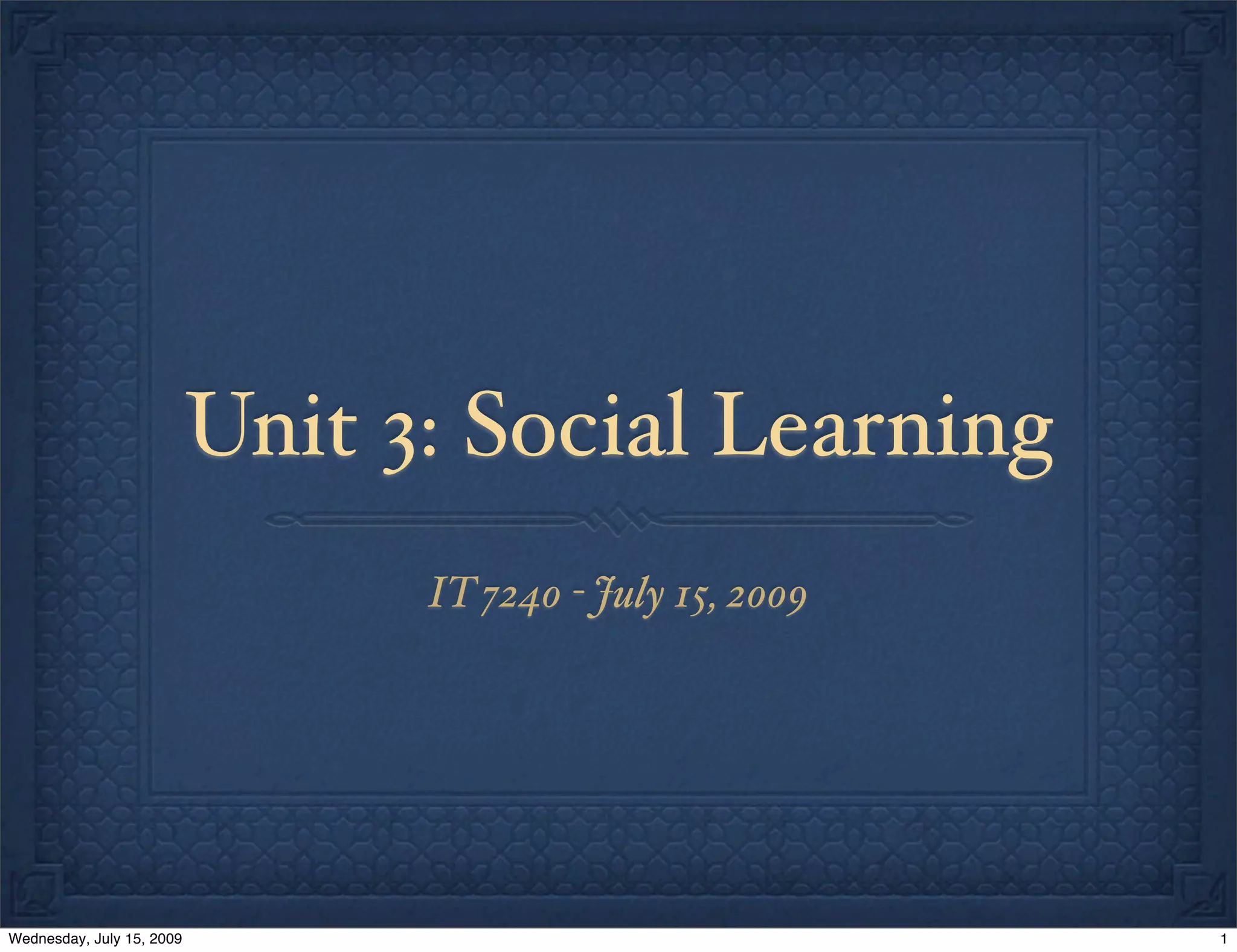 This document discusses social learning and various social media tools that can support it, including podcasting, wikis, blogs, and learning management systems. It covers topics like social learning networks, communities versus other organizational structures, and the stages of community development. Evaluation of social media is discussed using the framework of evaluating the promise, the tool, and the bargain. Examples are provided of different social media tools and their uses for social learning.
