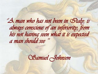 The document provides a comprehensive overview of Italy, including its geography, population, political structure, economy, language, and notable historical figures. It highlights the country's rich cultural history, from its ancient Roman roots to its contributions in art and science, as well as its culinary significance with dishes like pasta and pizza. Additionally, it emphasizes Italy's unique regional characteristics and the importance of its national identity.