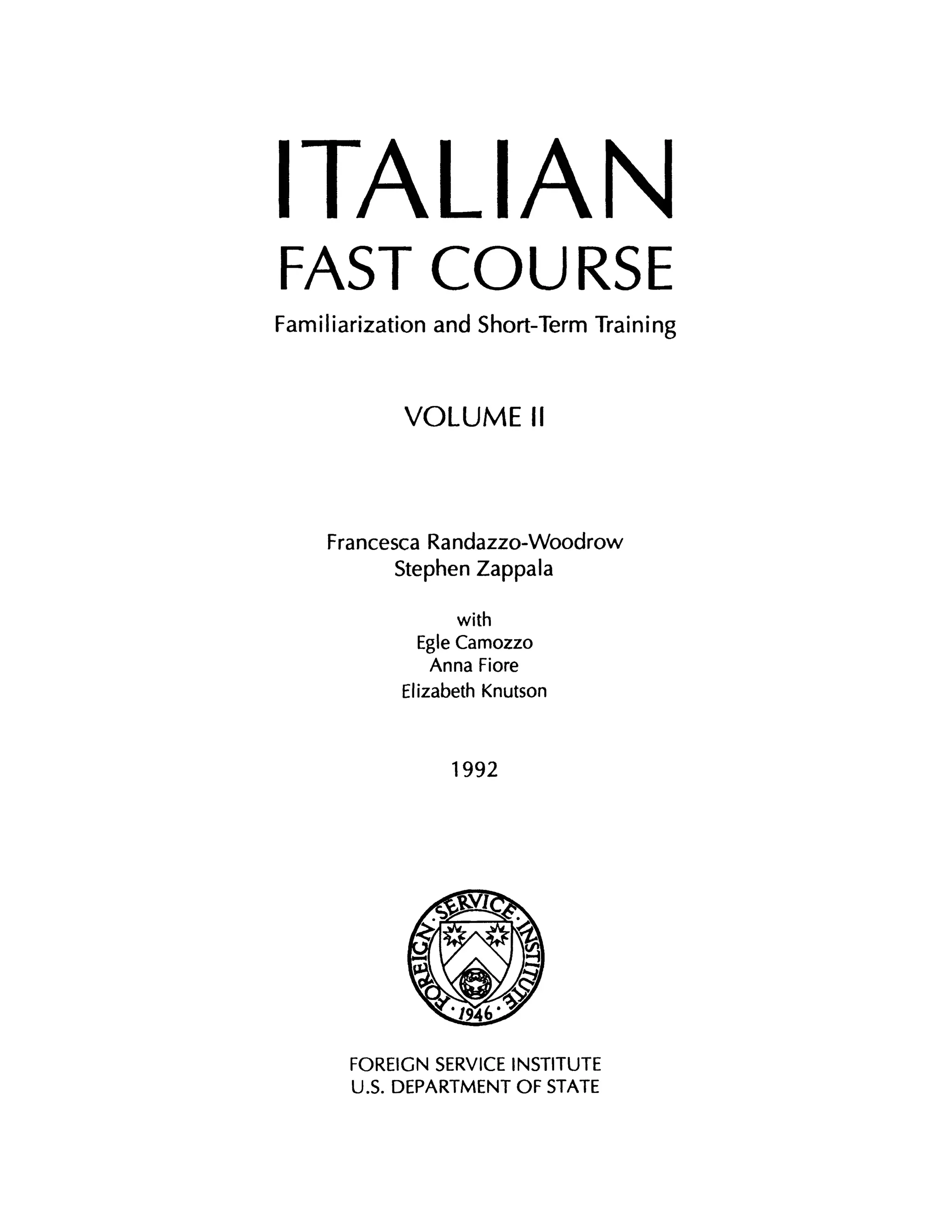 Il documento è un corso accelerato di lingua italiana che include informazioni culturali e vari scenari pratici per l'apprendimento. Contiene sezioni su situazioni quotidiane come telefonare in ufficio, interagire in ristoranti e affrontare problemi comuni. Inoltre, fornisce ricette, vocaboli e note grammaticali per facilitare l'acquisizione della lingua.