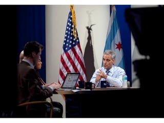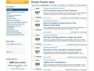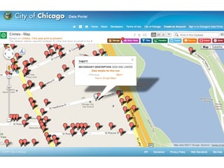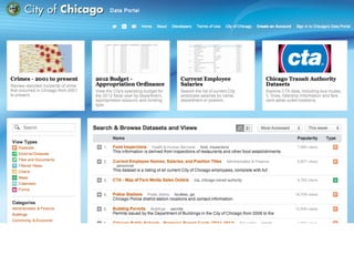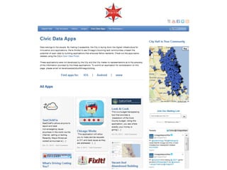 This document summarizes the first day on the job of the social media director for a 21 month old city startup running a 180 year old city. It introduces the chief data officer and chief technology officer, and discusses how transparency, accountability, analysis, and open data can build trust, improve processes, and grow businesses. It also lists several apps and websites launched by the chief technology officer to empower citizens and improve services.