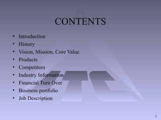 ITC Limited, founded in 1910 as the Imperial Tobacco Company, has diversified into multiple sectors including FMCG, hotels, and agricultural business. The company aims to maintain its status as one of India's most valuable corporations through superior performance and stakeholder value. ITC's major products include cigarettes and popular brands like Sunfeast and Ashirvaad, with significant competitors such as HUL and P&G.