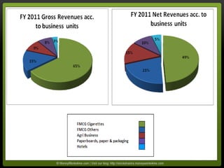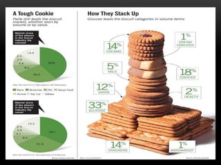 ITC has diversified from its origins as a tobacco company in 1910 into a conglomerate with businesses in FMCG, hotels, paper, agriculture, and IT. ITC launched its food division in 2002 with brands like Candyman and Aashirvaad atta. In 2003, ITC entered the biscuits segment with Sunfeast. Since then, Sunfeast has grown to become a market leader through new product innovations, a strong distribution network of over 1.8 million outlets, and promotional activities including brand ambassadors. ITC follows a diversification strategy to build footholds in fast growing Indian sectors and tap new profit opportunities beyond its traditional tobacco business.