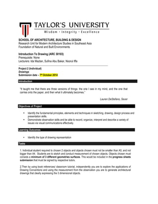 1. This document provides instructions for Project 2 of the Introduction to Drawing course.