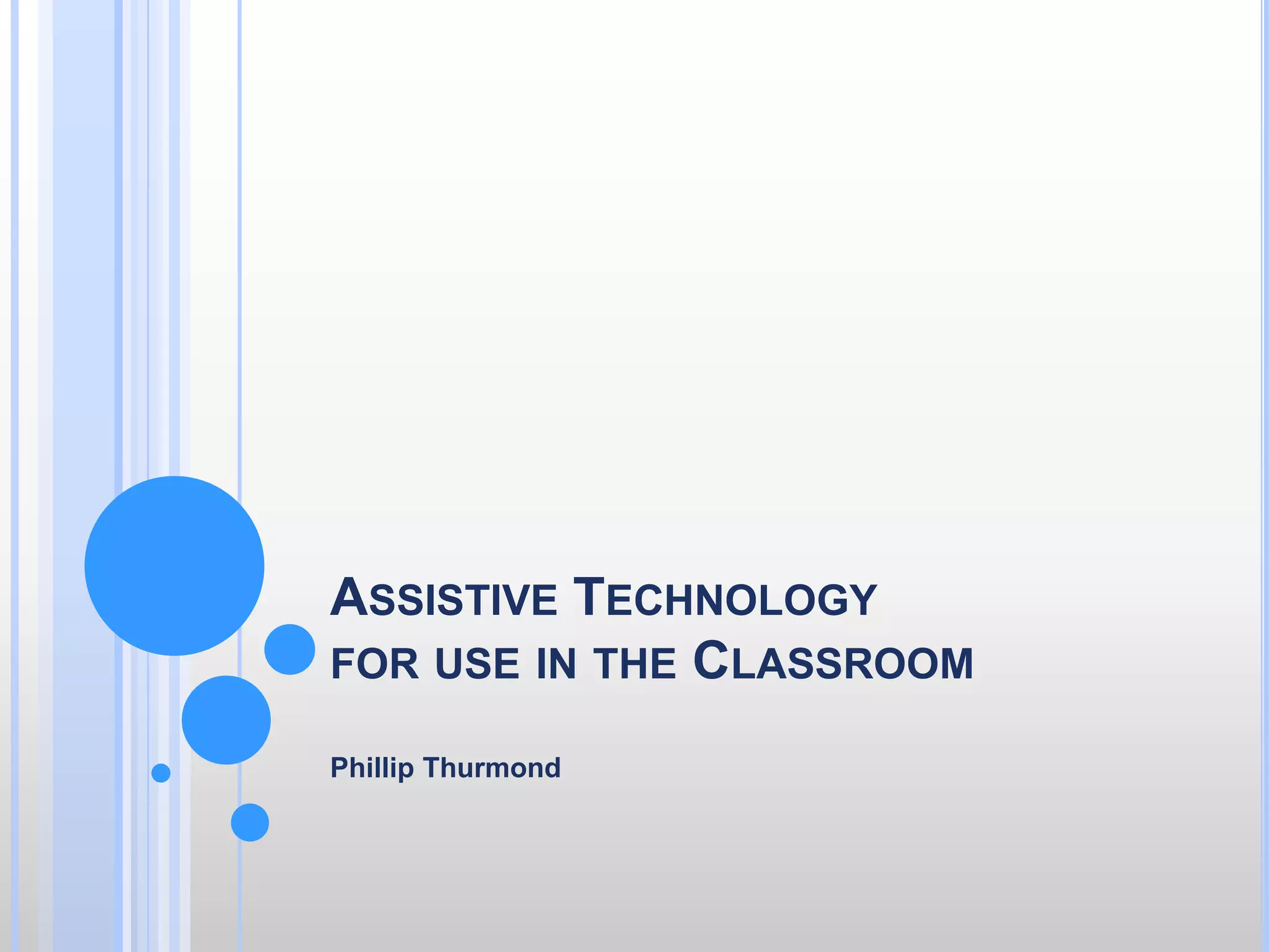 This document discusses assistive technology that can be used in classrooms to help students with various disabilities. It defines assistive technology as any equipment or product that is purchased or modified to assist an individual's functional capabilities. Some examples of disabilities that may benefit from assistive technology include ADHD, hearing impairments, and vision impairments. Assistive technologies are broken into three categories: no technology devices, low technology electronic devices, and high technology complex electronic devices. The document provides specific examples of assistive technologies that could help students with mild disabilities or hearing and vision impairments and stresses the importance of selecting technologies as a team to meet students' individual needs.