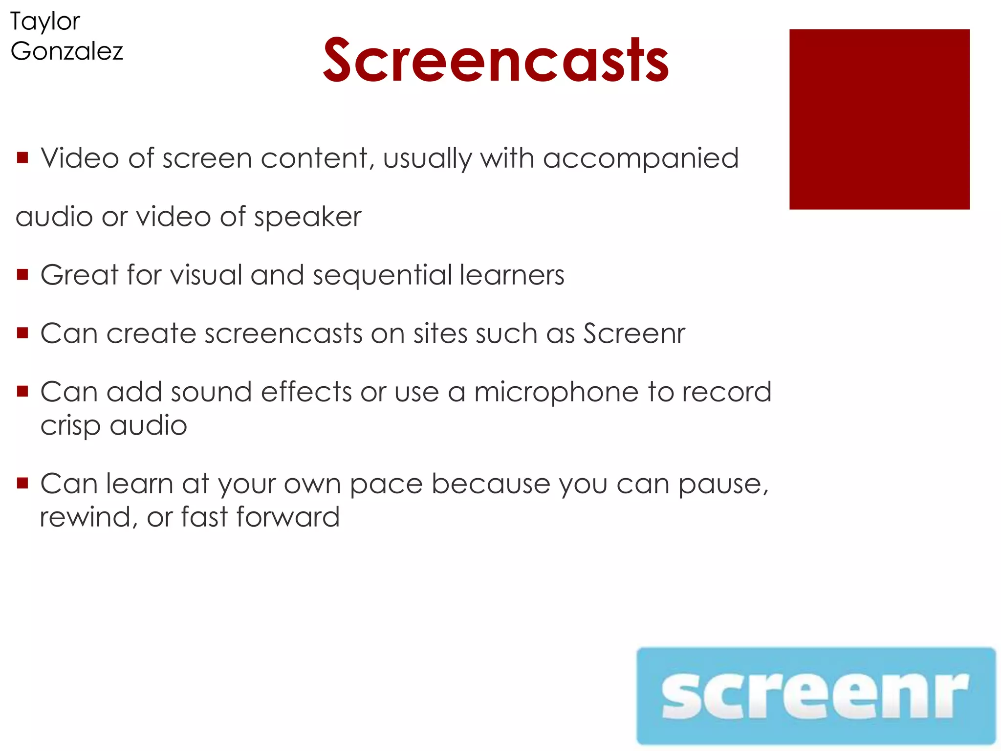 This document discusses different types of social learning including screencasts, podcasts, and multimedia. Screencasts are video recordings of a computer screen that are helpful for visual and sequential learners. Podcasts are audio recordings that cover a variety of topics and are easy to listen to on mobile devices. Multimedia incorporates multiple media types such as text, audio, video and graphics to make content easier to understand than just text. The authors found screencasts to be the most interesting as they allow pausing and rewinding. They were surprised by how ubiquitous multimedia has become. They want to learn more about podcasts and subscribe to podcasts on topics they enjoy. After ITEC, one author plans to continue using podcasts