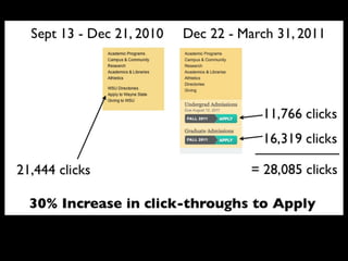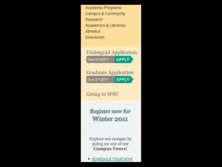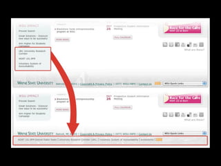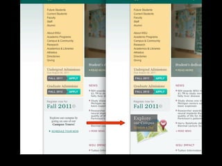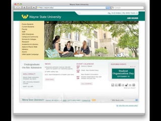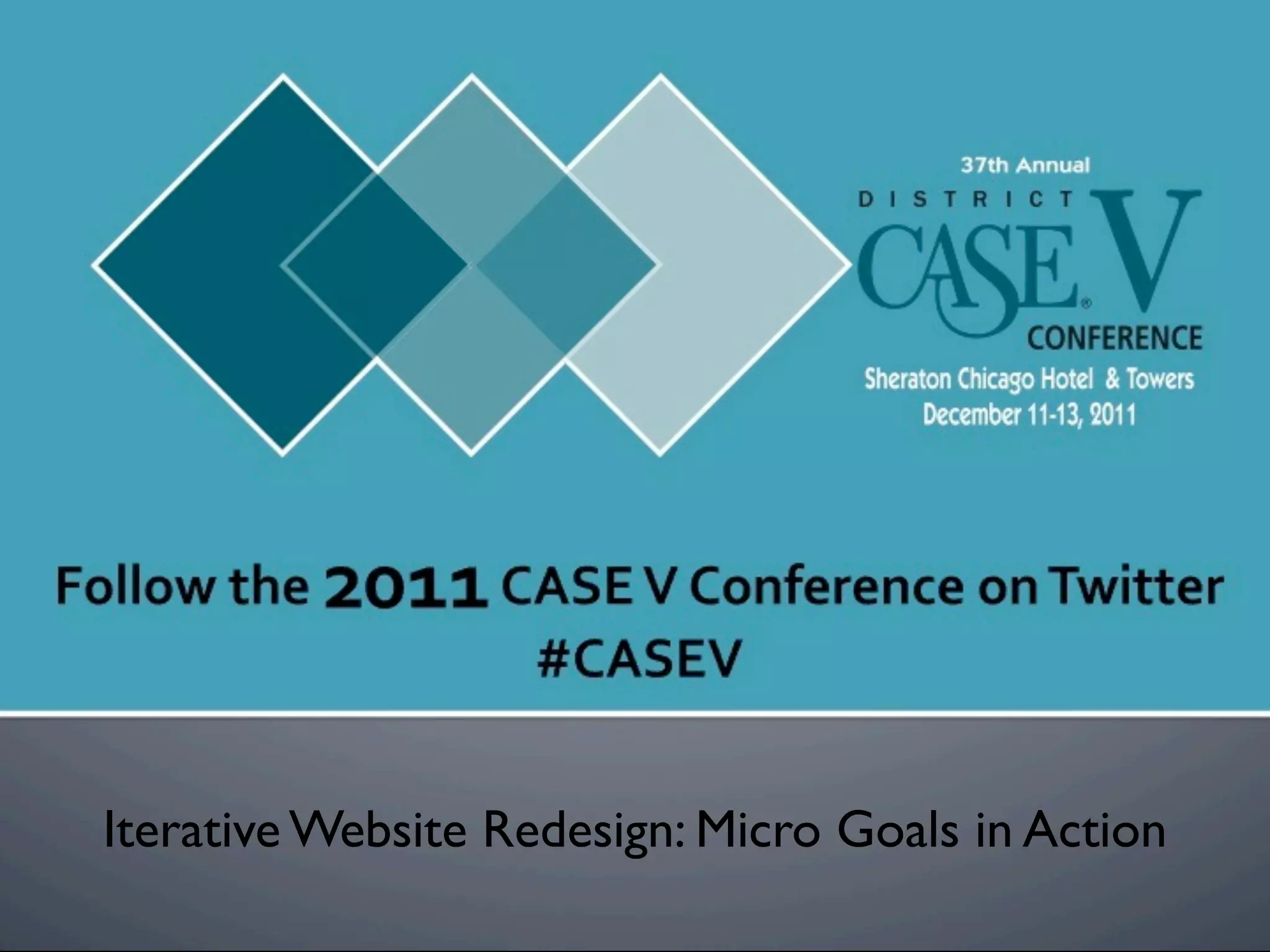 The document discusses the process and strategies for iterative website redesigns, emphasizing the importance of micro goals and feedback loops. It highlights the need for small, deliberate changes to improve user experience and achieve larger objectives without undergoing full redesigns. Tools and methods for tracking progress and communicating changes effectively are also mentioned.