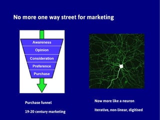 The document discusses the importance of aligning social media strategies with business objectives to combat digital darwinism and adapt to rapidly changing customer experiences. It highlights that many businesses, especially smaller ones, struggle to adequately integrate social media into their operations, despite claiming to have a strategy in place. To succeed, organizations must adopt a comprehensive approach to social business through seven strategic steps.