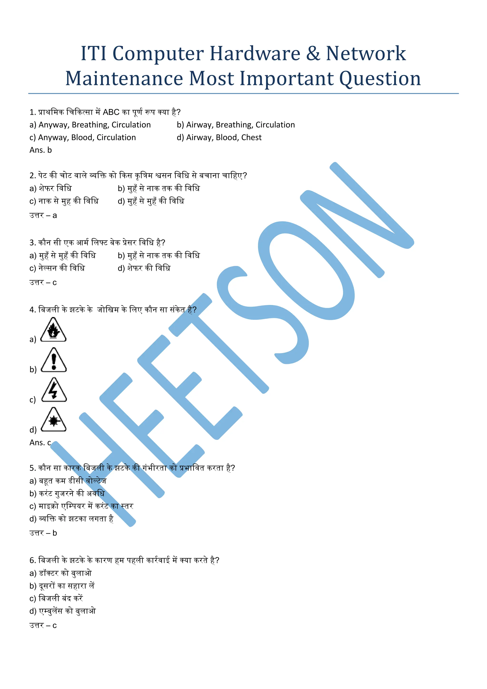 1. मबजली के झटके से ककसी व्यमि के इलाज के मलए ककस कदि का अनुसरर् ककया जाता है?