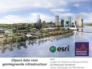 Workshop gegeven door Esri NL en de Nationale Denktank tijdens het Innovatie Tafel Infrastructuur congres. Open Data en Big Data zijn de besproken thema's betreffende het thema mobiliteit