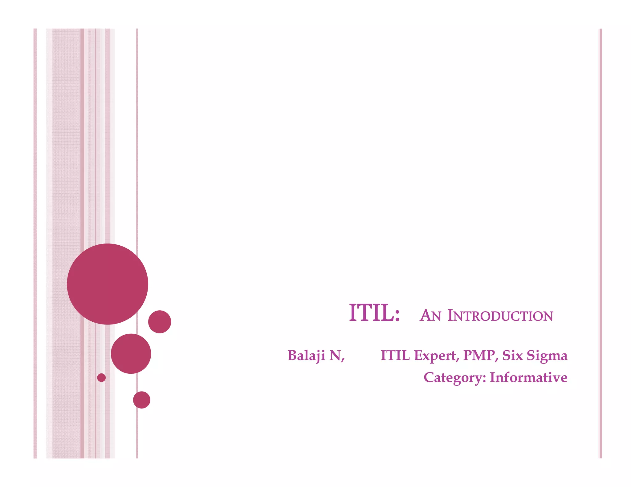 ITIL is a framework of best practices for managing IT services that is used globally. It recommends a process-based approach and covers the full lifecycle of IT services, ensuring alignment with business needs. Following ITIL practices can help organizations improve service quality, reduce costs, and better meet requirements. Certification in the ITIL framework provides skills valued by employers and distinguishes professionals through process-focused knowledge. The current version, ITIL v3, offers enhancements like additional processes and a comprehensive knowledge management approach.