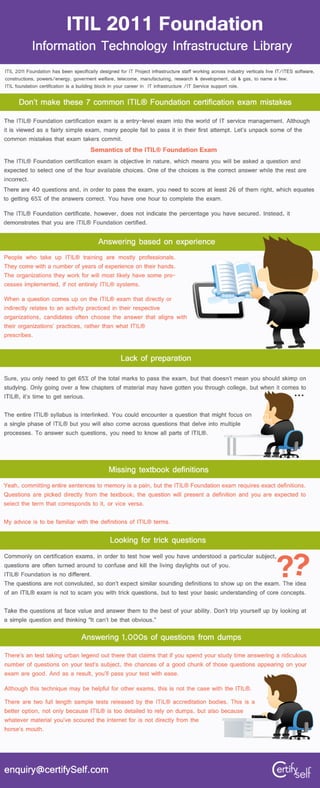 How To Pass ITIL ?? Common mistakes for ITIL Exam For more details : enquiry@certifyself.com