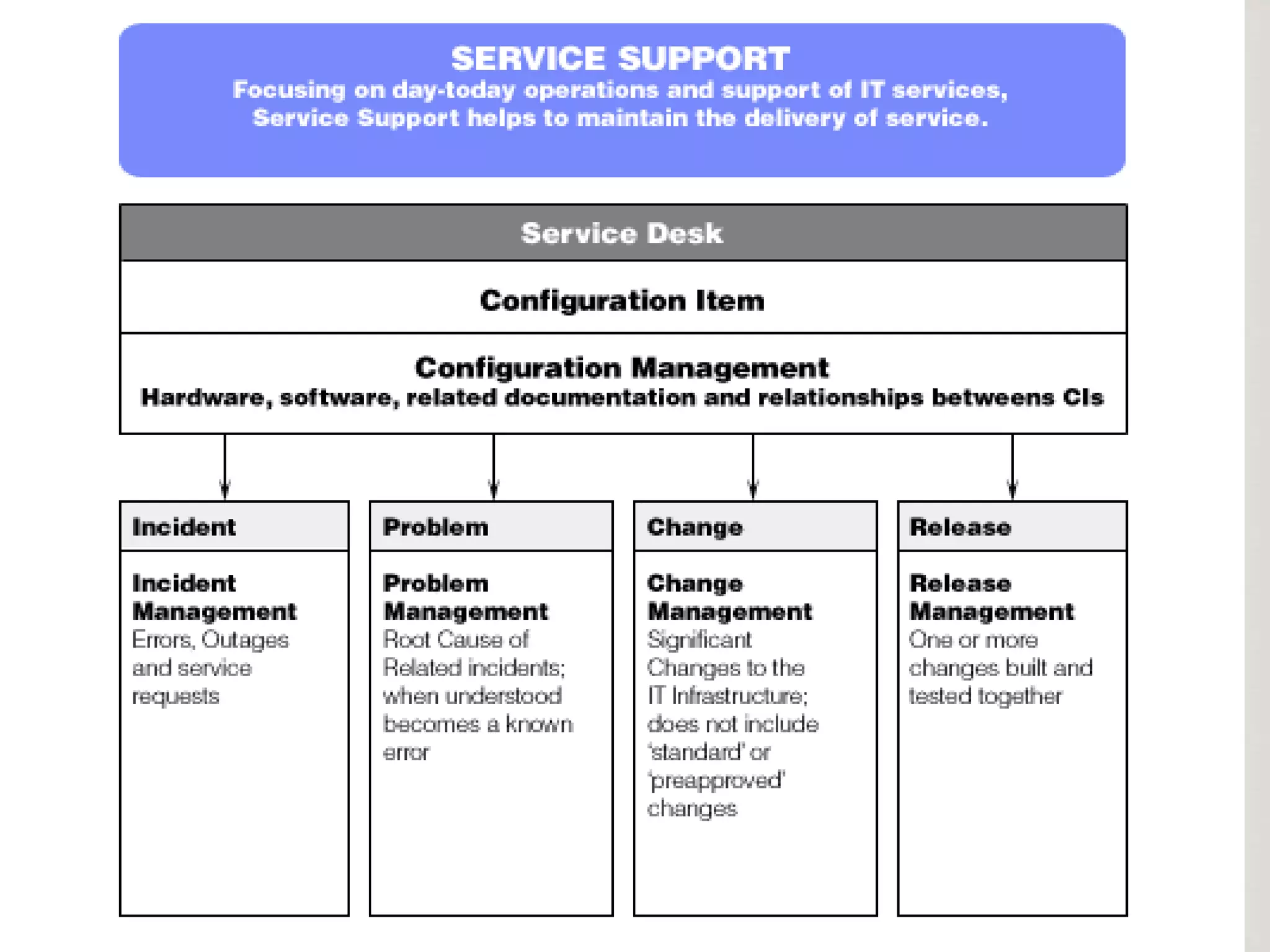 The document discusses key concepts in IT service management (ITSM) and ITIL. It covers the core ITSM components including service strategy, service design, service transition, service operation, and continual service improvement. Some key processes explained in ITIL include change management, problem management, and incident management. The benefits of adopting ITSM best practices like ITIL are also highlighted.