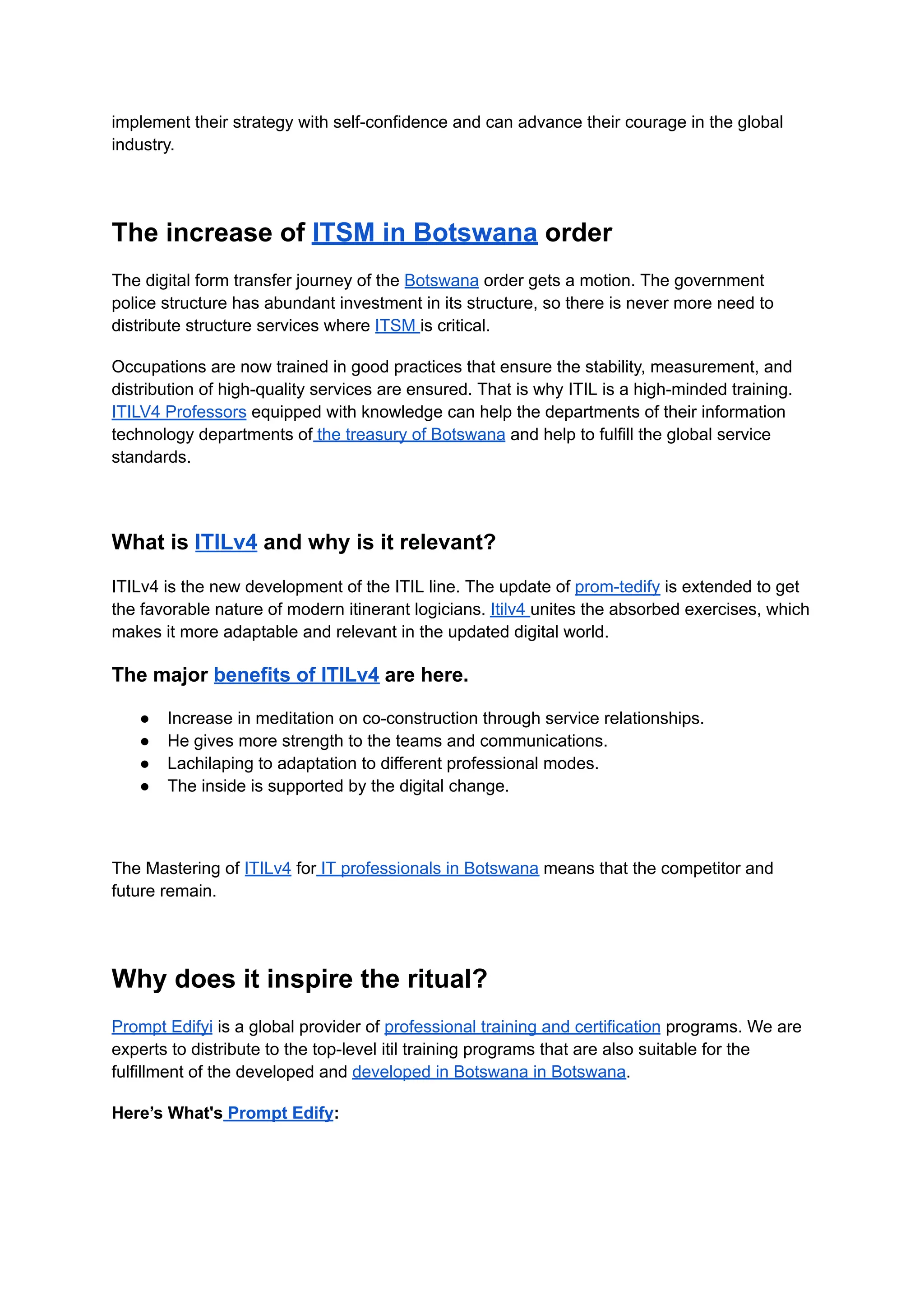 The Mastering of ITILv4 for IT professionals in Botswana means that the competitor and