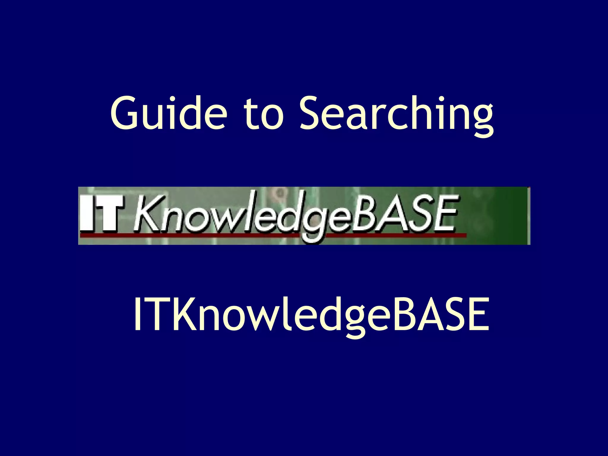 The document provides instructions for accessing the library portal and searching the ITKnowledgeBASE database. Users should log in with their username and password, click on the Library and Digital Collections links, and then select ITKnowledgeBASE. Searches should use keywords or short phrases in English to effectively find relevant records, which will be displayed for the user to select and view full text articles and reports.