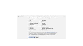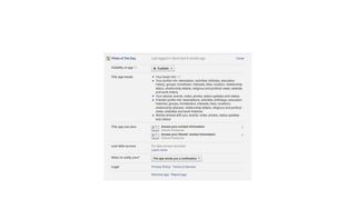 The document provides guidance on selecting and securing a social networking platform. It recommends carefully reviewing privacy policies to understand how personal data is used and shared. It also suggests choosing privacy settings that allow sharing only with close contacts, and being aware of a platform's server locations and compliance with government data requests. Location of servers and compliance with government requests impact privacy and security.