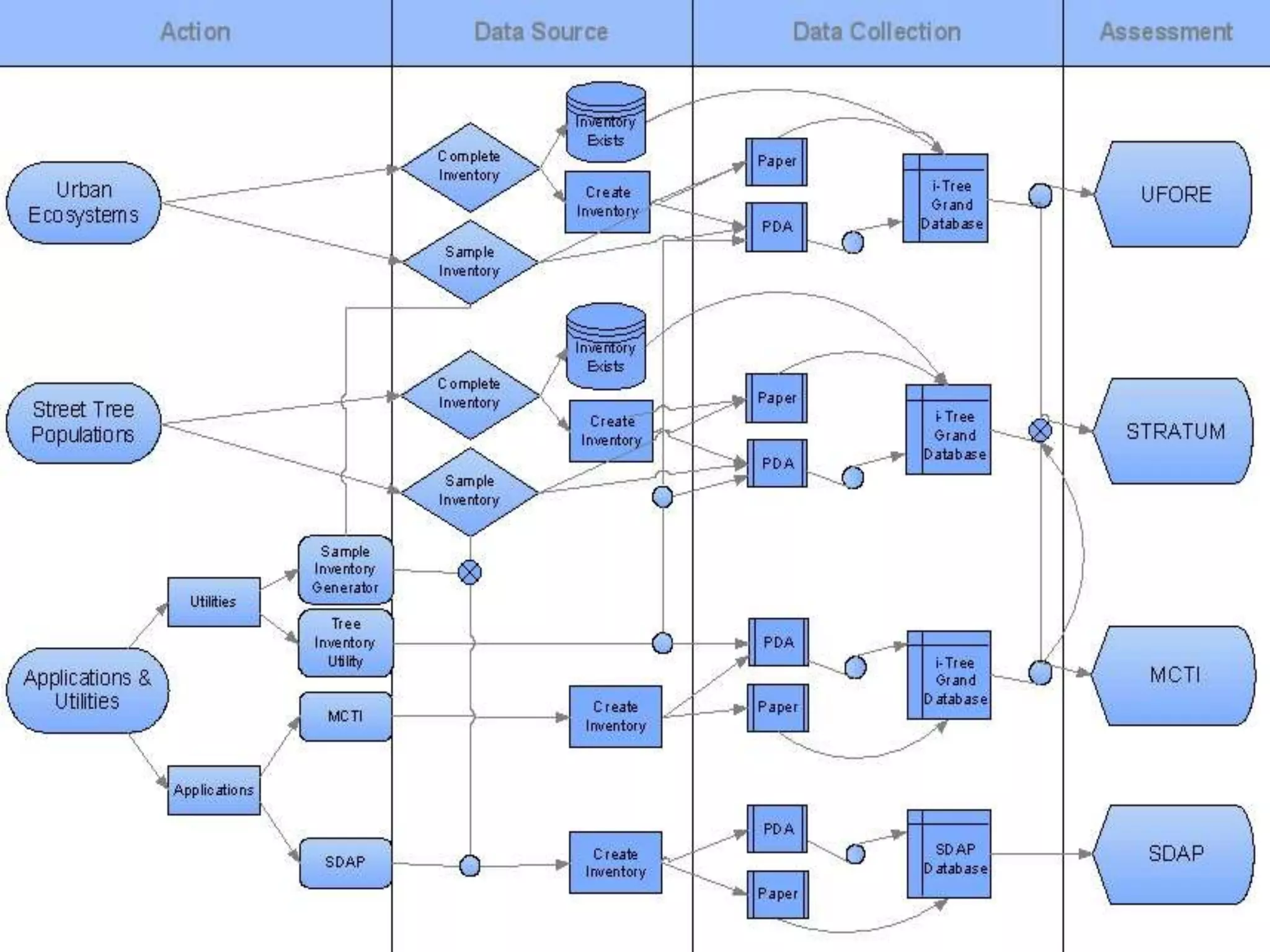 The i-Tree initiative, launched by the Georgia Urban Forestry Council, aims to enhance urban forest management through a suite of web-based tools that assess tree structure, function, and value. The program provides detailed management guides, including recommendations for tree planting and maintenance to improve forest and human health, while also addressing urban challenges like stormwater management and air quality. i-Tree serves various stakeholders, including governments, non-profits, universities, and ecological consultants, offering insights into the benefits of trees, such as carbon sequestration and energy conservation.