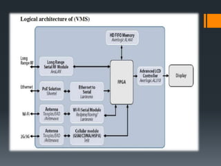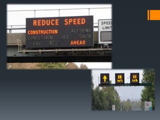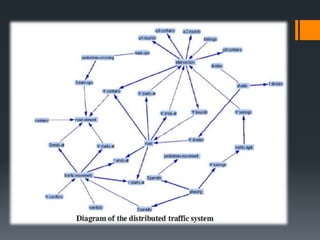 The document discusses intelligent transportation systems (ITS) architecture in Kajang, Malaysia. It provides an overview of ITS, describing how ITS uses technology to improve transportation safety, mobility and efficiency. It then discusses various ITS user services divided into 8 groups and the ITS architecture, which provides a common framework for planning and integrating ITS. This includes the logical architecture defining functions/processes and information flows, and the physical architecture grouping functions into subsystems. It also discusses several ITS components in more detail, including traffic light systems, video detection for traffic lights, smart surveillance systems, and variable message signs (VMS).