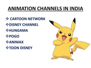 This document analyzes cartoon channels in India. It finds that Cartoon Network has the highest viewership at 35%, followed by Pogo at 30%. It also shows Cartoon Network's average annual revenue from 2008-2013 was Rs. 13.01 million. Additionally, a survey found the average number of people watching cartoon channels is 12.85, with a median of 12.27 and mode of 9.