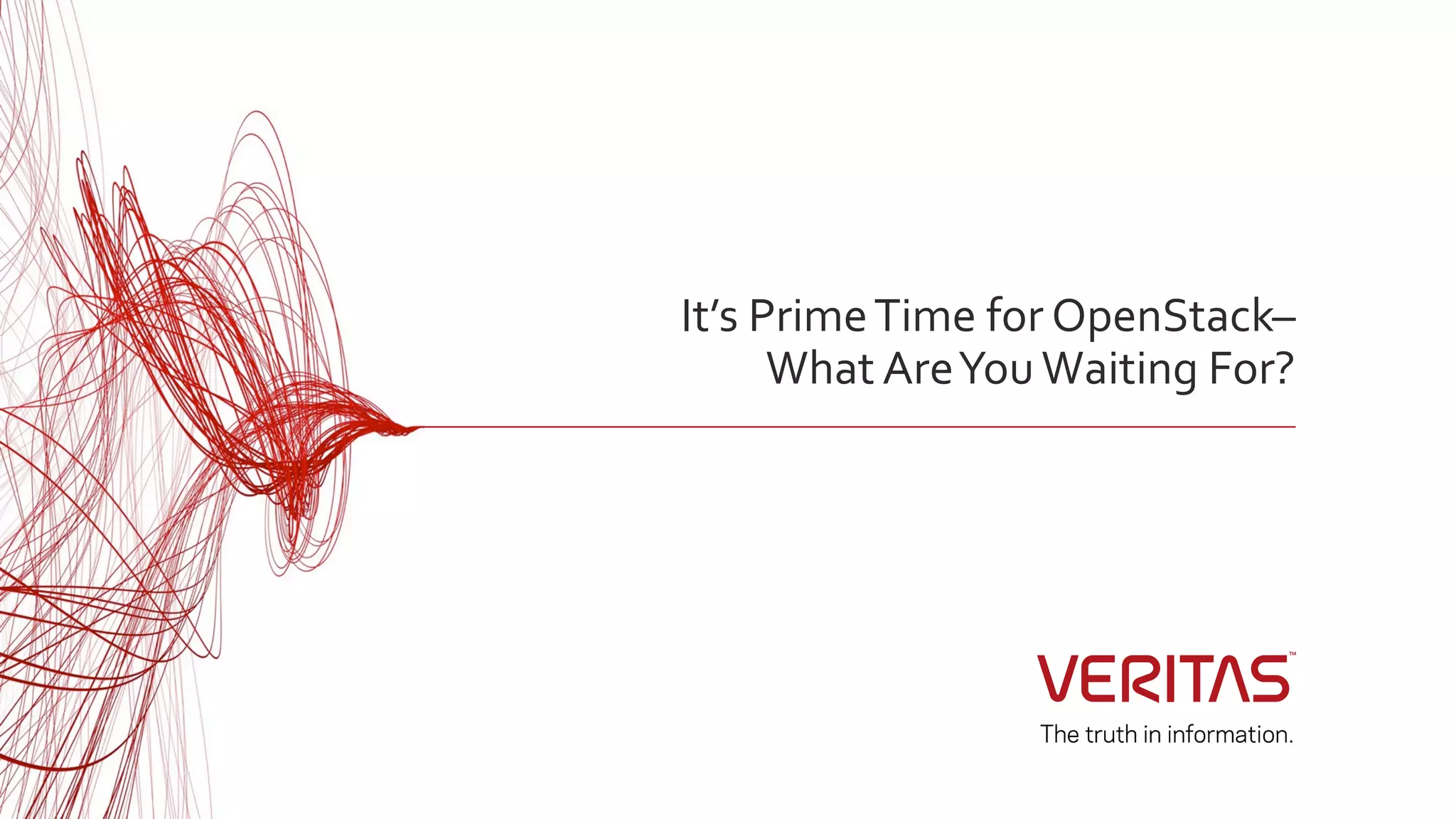 The document discusses the rise of OpenStack and the benefits driving its adoption, including avoiding vendor lock-in and improving operational efficiency. It highlights Veritas' solutions for OpenStack, particularly in hyperscale environments, emphasizing data protection, performance, and resiliency. Additionally, it addresses the challenges of OpenStack storage and presents Veritas' capabilities in providing quality service levels and configurable data management.