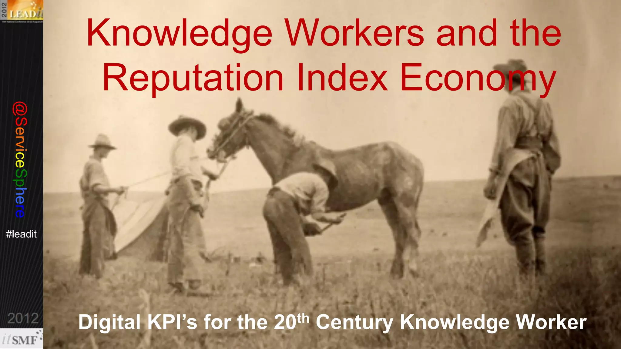 The document discusses the concepts of reputation, knowledge lockers, and the digital quantified self. It describes how reputation is formed through networks of peers and algorithms. Knowledge lockers are discussed as trusted sources for storing and accessing knowledge. The digital quantified self is described as low-friction data collection of health, activities, environment, social media use, and other metrics that can be tracked and analyzed over time. The future is discussed as a continued expansion of these digital representations and metrics.