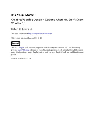 This document is a tutorial by Robert D. Brown III focusing on decision-making strategies, particularly in complex scenarios where multiple factors and options are involved. It introduces tools such as decision hierarchy and strategy tables to help decision-makers navigate complexity and avoid common pitfalls like analysis paralysis. The tutorial emphasizes the importance of clearly defining problems and exploring creative alternatives to enhance decision-making effectiveness.