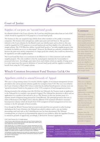 2) The Court of Justice ruled that car parts salvaged from scrap vehicles can be considered "second-hand goods" for VAT purposes, allowing their sale under the favorable VAT margin scheme.