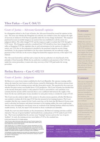 2) An EU court advisor said Hungary cannot deny a taxpayer's VAT recovery after incorrectly applying the reverse charge mechanism, as that violates neutrality.