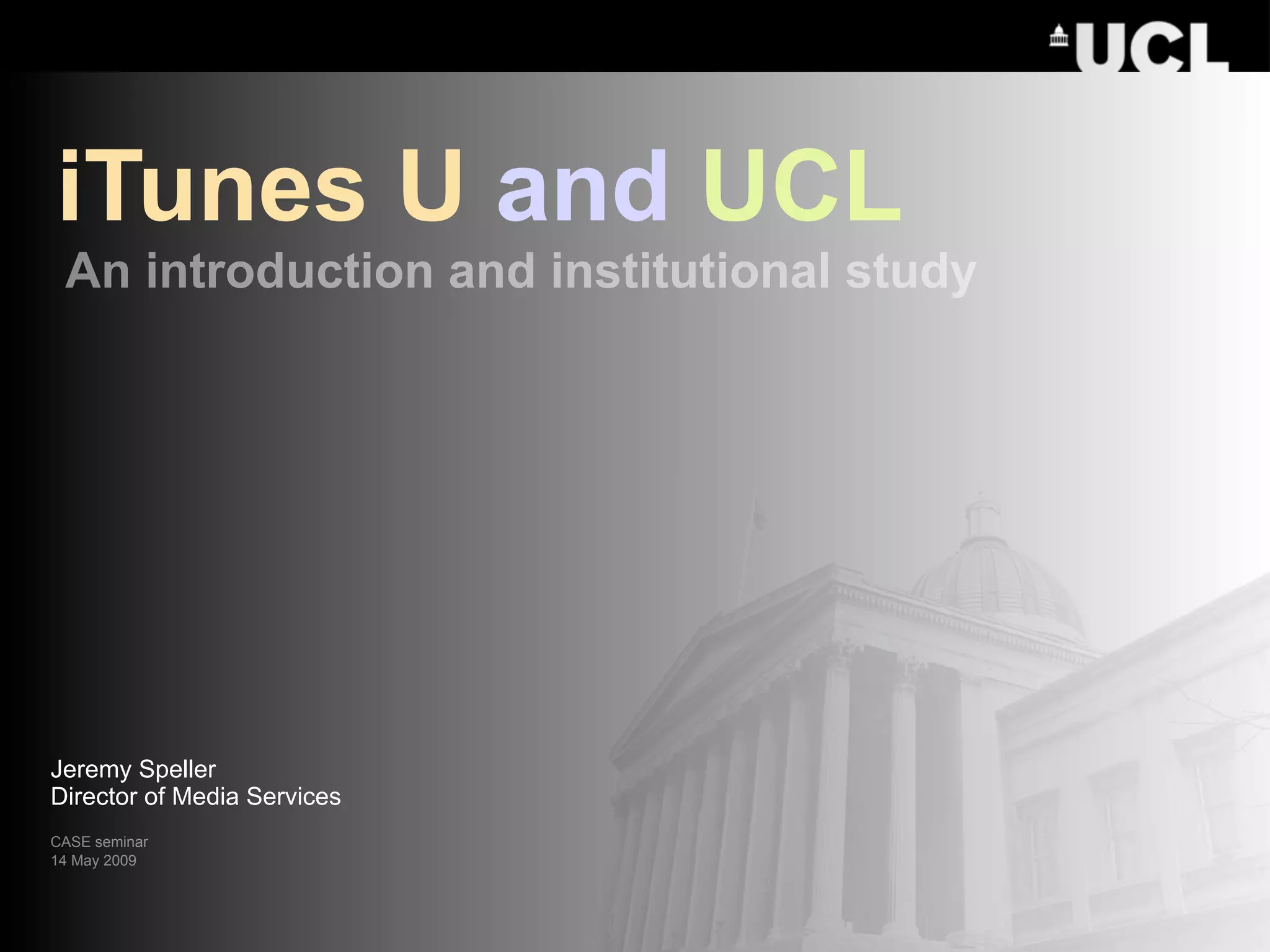 This document discusses UCL's adoption of iTunes U and the development of their podcasting and online media services. It describes how UCL began experimenting with podcasting, their pilot project with iTunes U, building out their team and content, and increasing integration with their virtual learning environment and other systems. It also outlines future plans like improved automation, a private iTunes U site, and expanding communications through YouTube and other channels.
