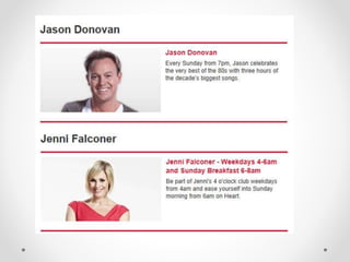 The document discusses advertising options for a magazine called Leicestershire Living. It considers advertising on ITV, which could cost between £2,000-£1m but would only reach the West Midlands region. It also evaluates advertising on local radio stations like GEM 106 and Heart Radio. Advertising on stations with 1980s music playlists and conversational shows between 1-4pm may appeal best to the target audience of mature adults. Further market research is needed to determine if advertising in the West Midlands could attract potential East Midlands visitors.