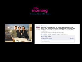 The document discusses the frequency of interactions between ITV and Facebook, highlighting the importance of Facebook's Edgerank. It emphasizes the need for timely posting around key interaction times. Additionally, it mentions maintaining a consistent look and feel across posts.
