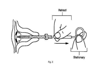 The document summarizes the history and types of intrauterine devices (IUDs). It discusses early IUD designs from the 1900s and major developments, including the addition of copper and hormones to IUDs to increase effectiveness. The main types of IUDs are described - non-medicated, copper-containing, and hormone-containing. Key IUDs like the Lippes Loop, Copper T, and Mirena are explained. The document also covers IUD mechanisms of action, characteristics, insertion guidelines, potential infections issues, and appropriate users.