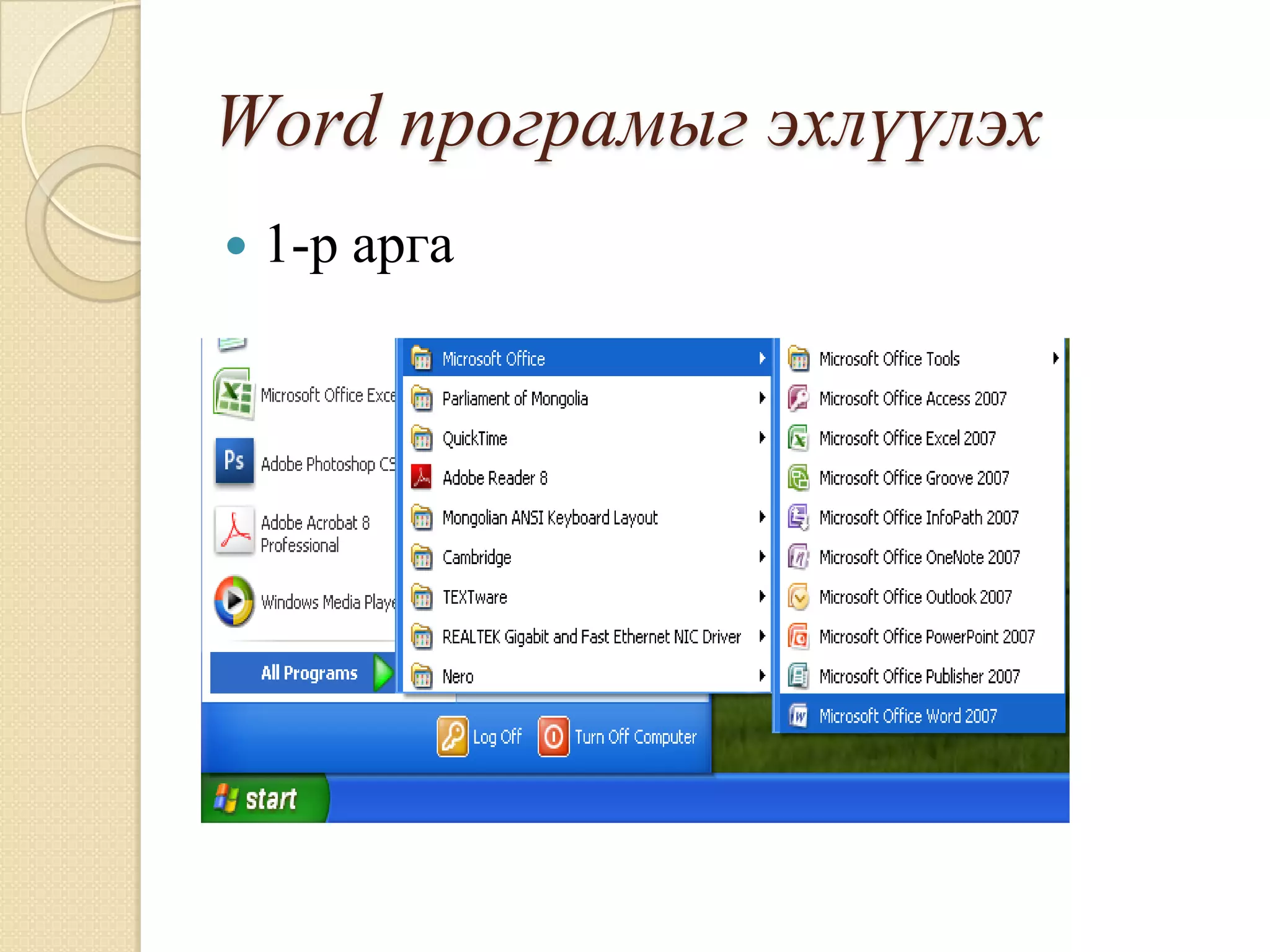 1. Дýëãýöèéí äîîä õýñýãò áàéðëàõ taskbar äýýðõ