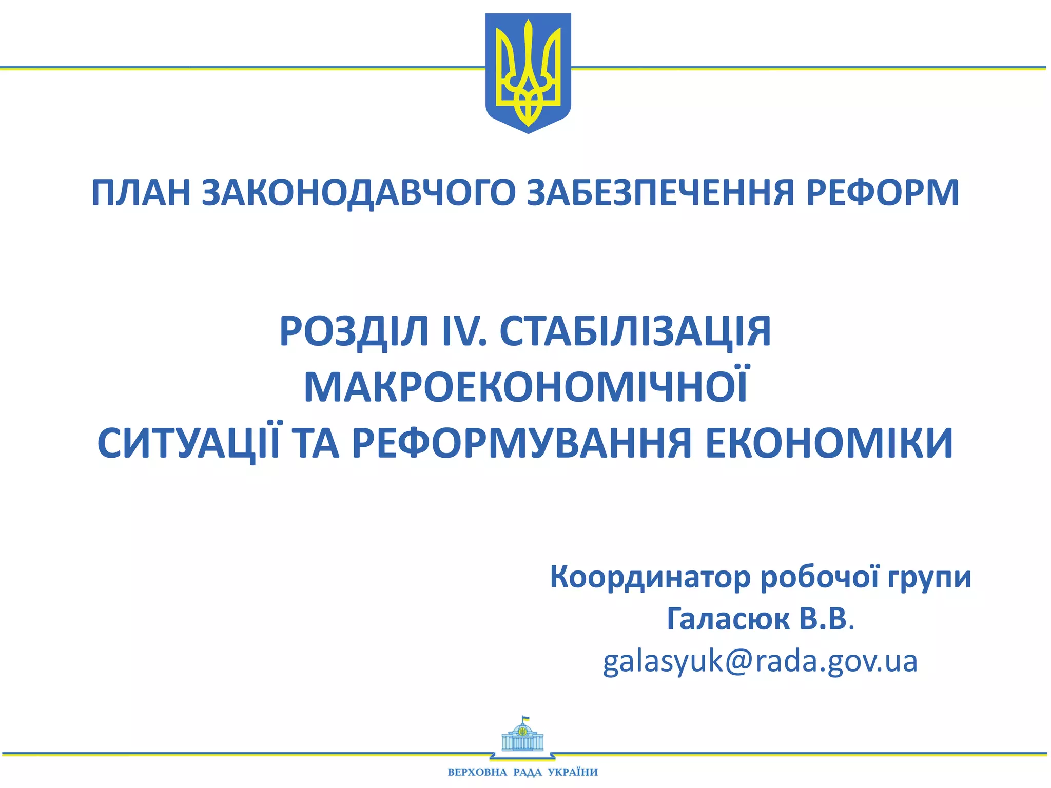Розділ IV. Стабілізація макроекономічної ситуації та реформування економіки Плану законодавчого забезпечення реформ (ЗЗР)