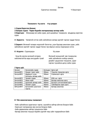 БАГА БОЛОВСРОЛ - ДҮРСЛЭХ УРЛАГ, ТЕХНОЛОГИ DOCX