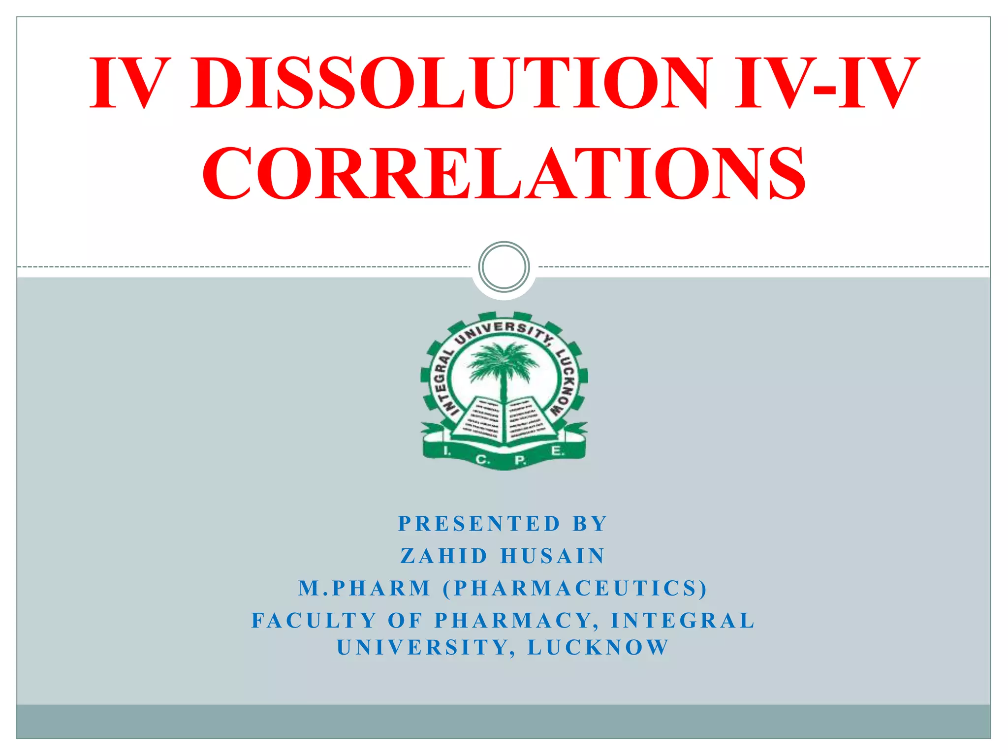 This document discusses in vitro dissolution testing and in vitro-in vivo correlations (IVIVCs). It defines dissolution as the process by which a drug is released from a solid dosage form and solubilized in a liquid solvent. Dissolution is an important quality control procedure linked to in vivo product performance. The document describes different levels of IVIVC (A, B, C, multiple level C) and their regulatory significance. It also discusses using computer models to establish IVIVCs through convolution and deconvolution approaches to predict plasma concentration profiles and estimate in vitro dissolution profiles.