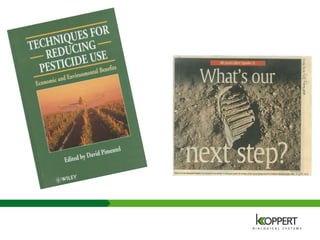 The document discusses integrated crop management's evolution towards sustainable practices, highlighting the need for innovative organic techniques and the importance of healthy soil. It emphasizes a shift from reliance on chemical pesticides to integrated pest and disease management (IPM), focusing on biological control and resilience against climate change. Challenges include regulatory hurdles, resistance management, and the necessity for a genetically diverse portfolio of crops to enhance sustainability and productivity.