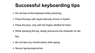 In thetouch typing techniques the typing rhythm