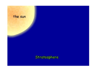 - The greenhouse effect involves gases like carbon dioxide trapping heat in the lower atmosphere and influencing global temperatures. Depletion of the ozone layer allows more harmful UV radiation to reach the Earth's surface.