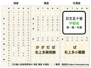 五⼗⾳ 基礎⽇語 平假名⽚假名 清⾳濁 ⾳半濁⾳撥⾳拗⾳⻑⾳促⾳