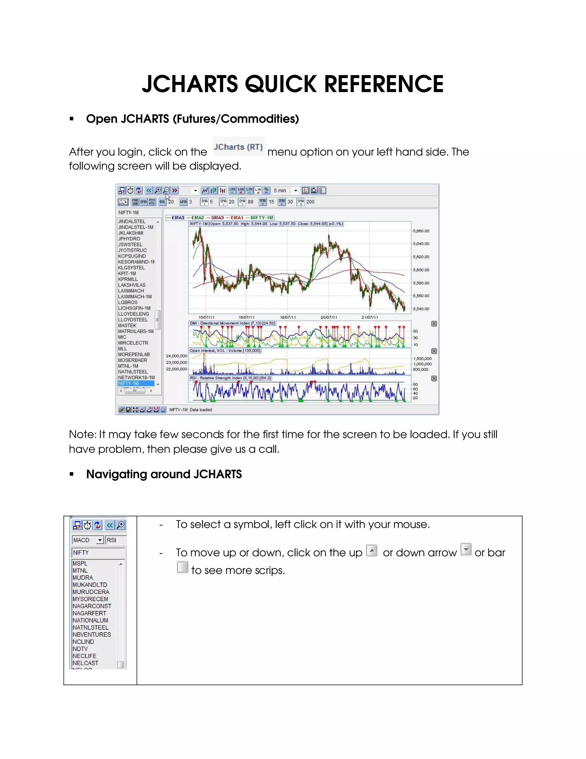 1. Open JCharts after logging in and navigate around by selecting symbols and using the arrows.
