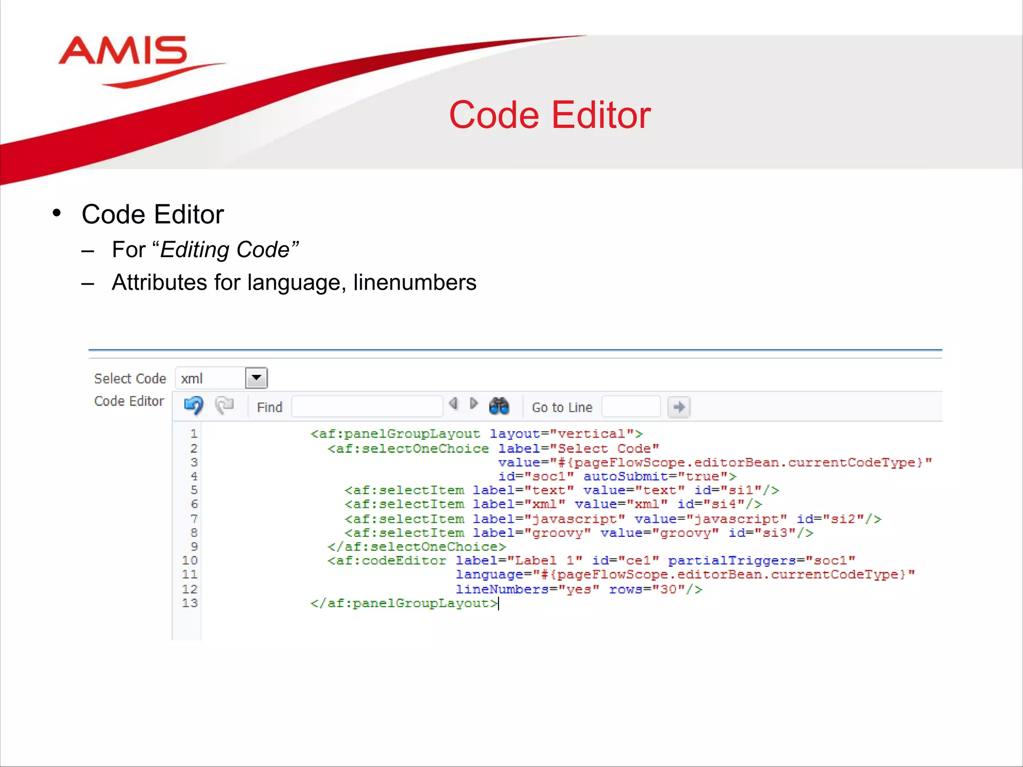The document summarizes new features in ADF 12c including a code editor, list view, panelGridLayout component, panelDrawer and panelSpringboard demos, enhancements to table, calendar, and input components, a new Skyros skin, enabling runtime skin updates, and improvements to the skin editor design and selectors tabs. It provides details on capabilities and functionality for several new and updated ADF Faces components.